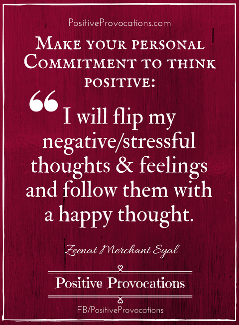 Positively Affirm everyday(especially when those negative thoughts and feelings strike) by saying this to yourself : I will flip my negative/stressful thoughts and feelings and follow them with a happy thought.