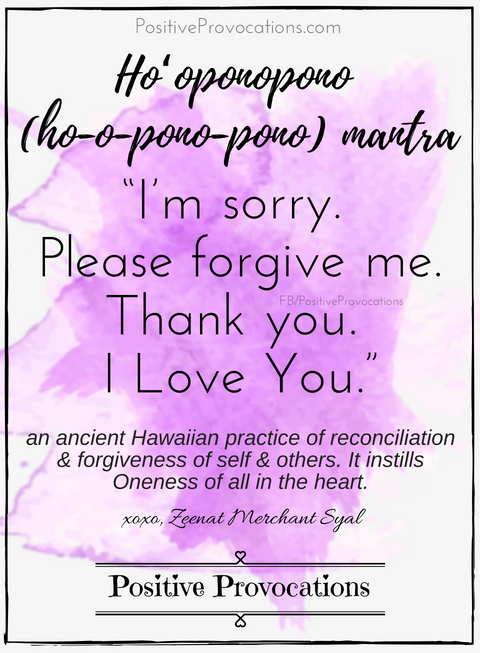 A mantra I use for myself and keep repeating in my heart for everyone I meet : “I’m sorry. Please forgive me. Thank you. I Love You.” ~ This is the Hoʻoponopono (ho-o-pono-pono) mantra. It is an ancient Hawaiian practice of reconciliation and forgiveness of self and others. It instills Oneness of all in the heart.