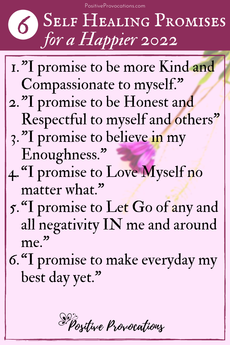 A gentle suggestion: I’m creating a picture based list of the 6 Positive Promises for 2022 below. Please save it either on Pinterest or download and print it and keep it handy. You can write them down in your journal as well. This way these promises will stay in front of you and serve as a constant reminder to stay on the positive healing track all year round.