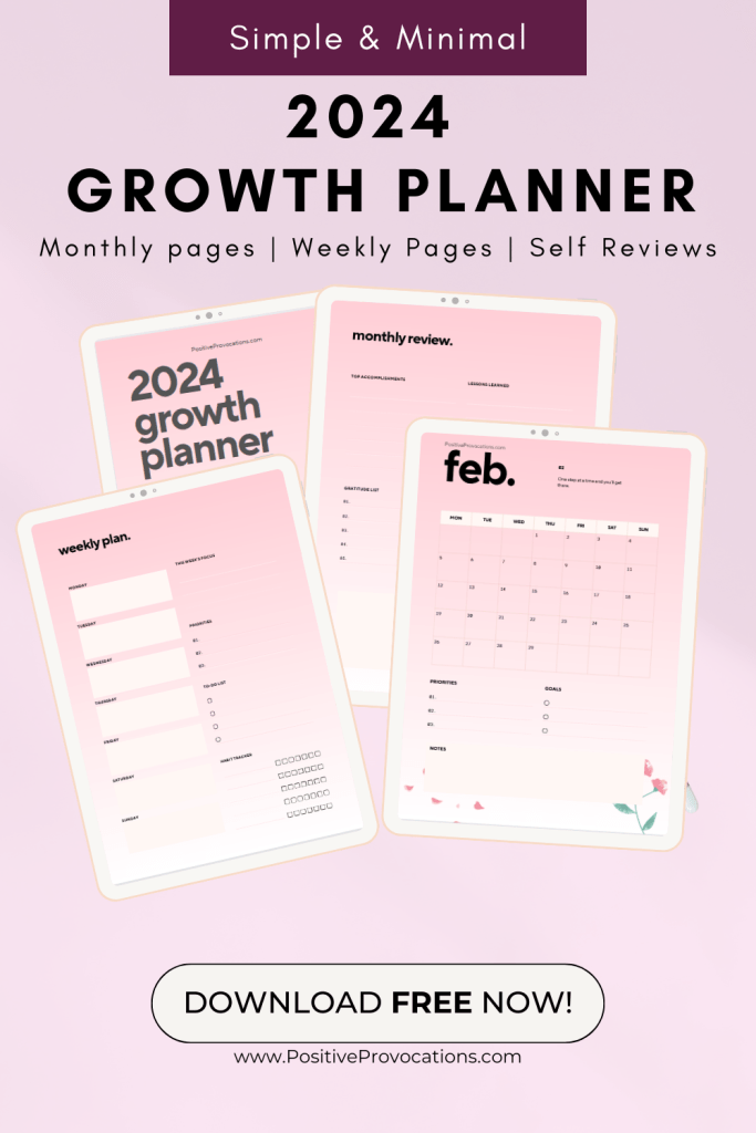 I’m a firm believer that if you want to get something done, you need to write it down. My word for 2024 is GROWTH so my planner is also growth themed, but growth is what we all want in the new year. So, this planner will work beautifully for you too.